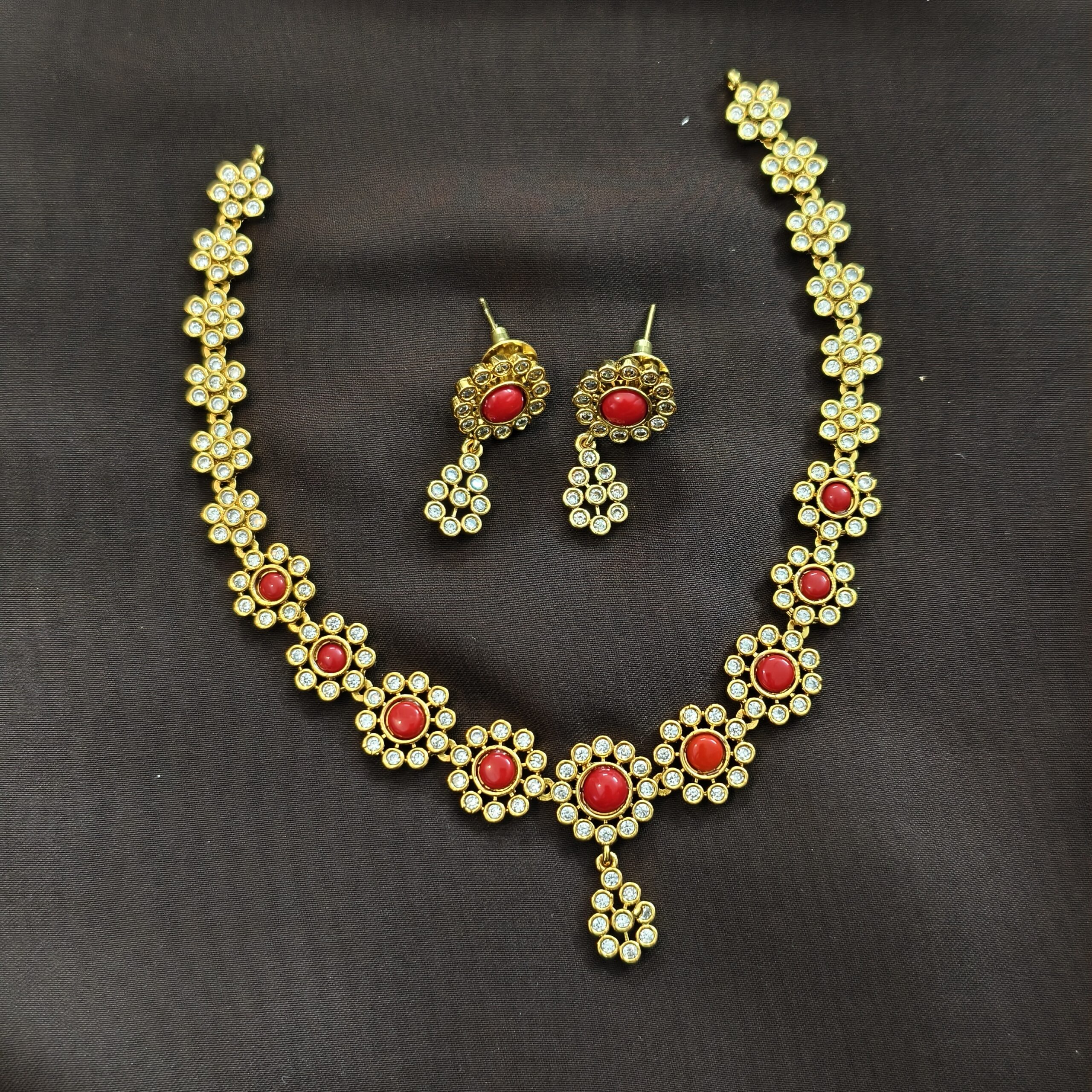 Be the first to review “flower design full coral neckset with earrings and backchain”