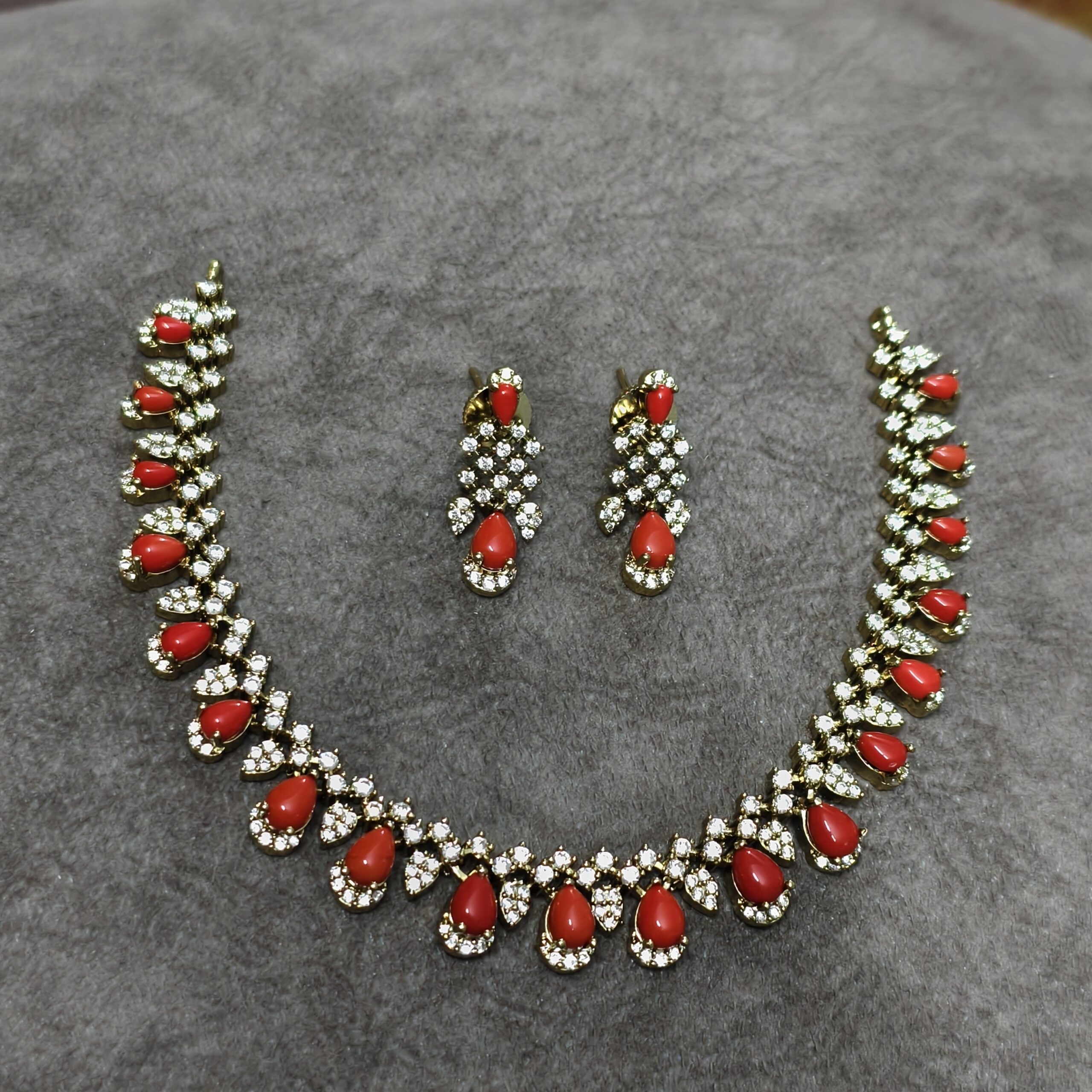 Be the first to review “Victorian polish cz with coral neckset with backchain and earrings”