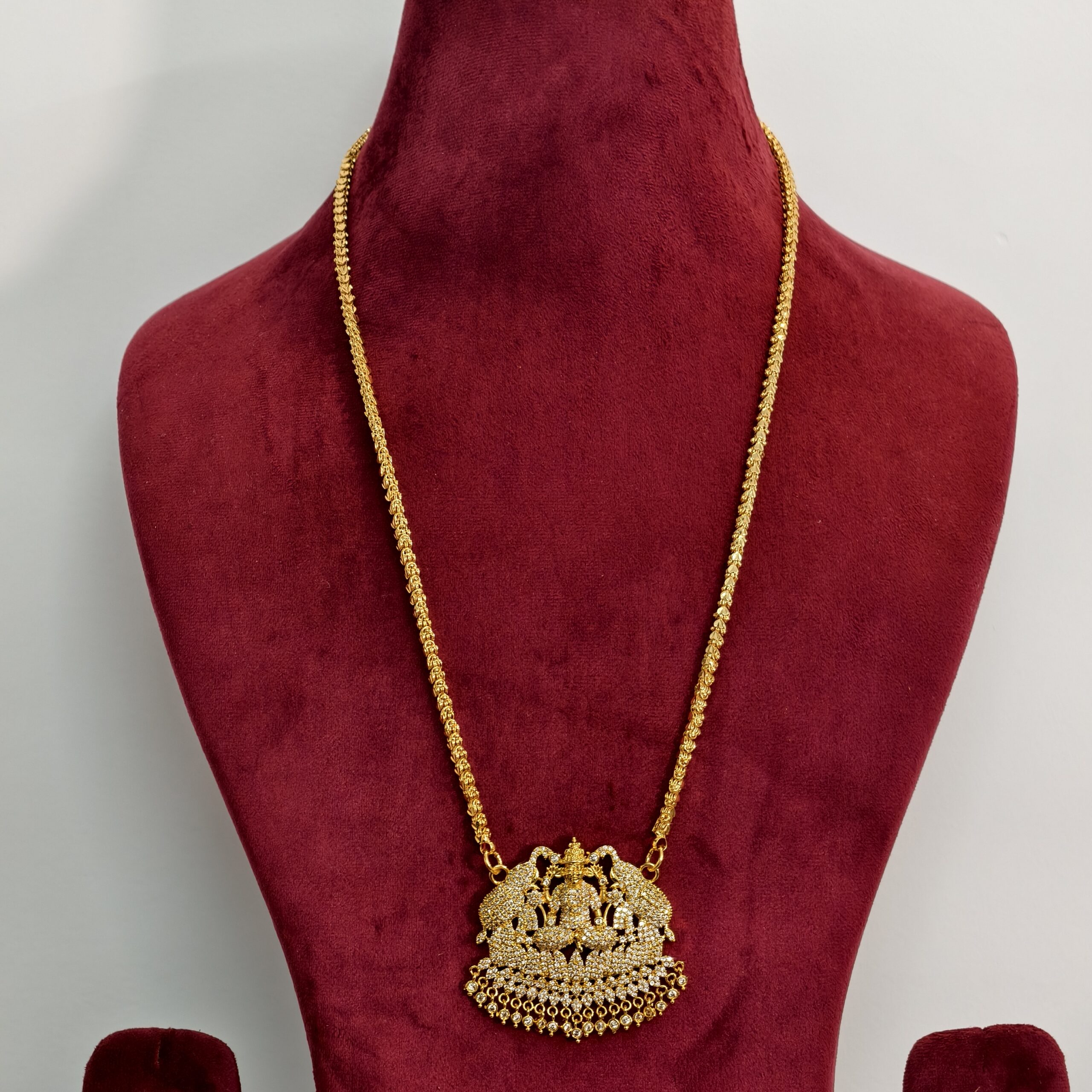 Be the first to review “fj1686 30 inches micro gold plated gajala chain with white stone cz lakshmi pendant”