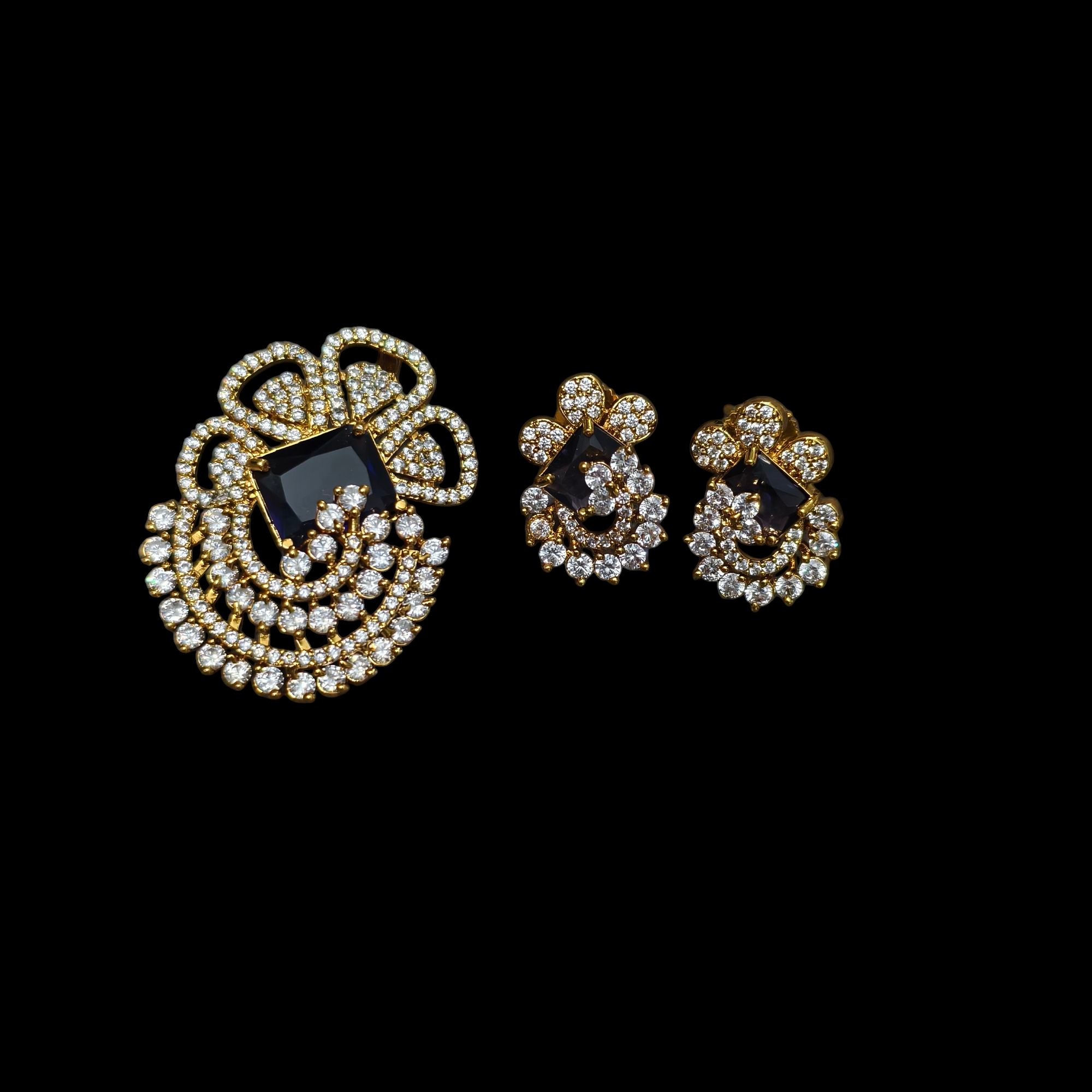 Be the first to review “AD cz stone middle green stone pendant with eartops”