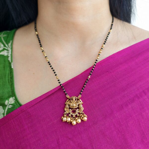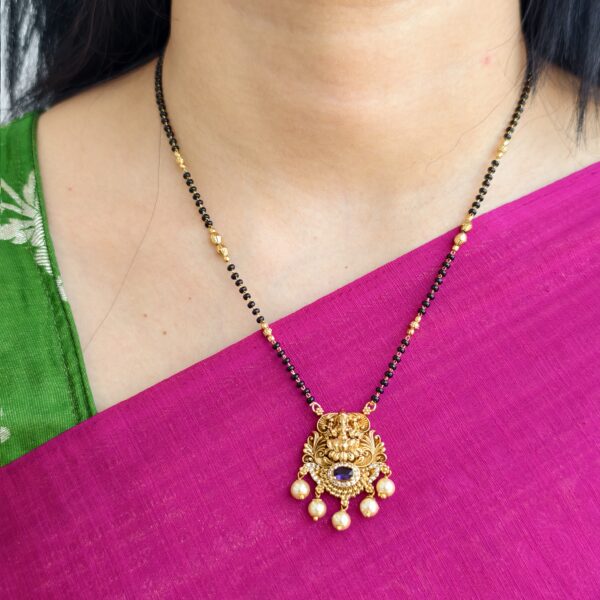 fj1884 lakshmi pendent single line black beads code2