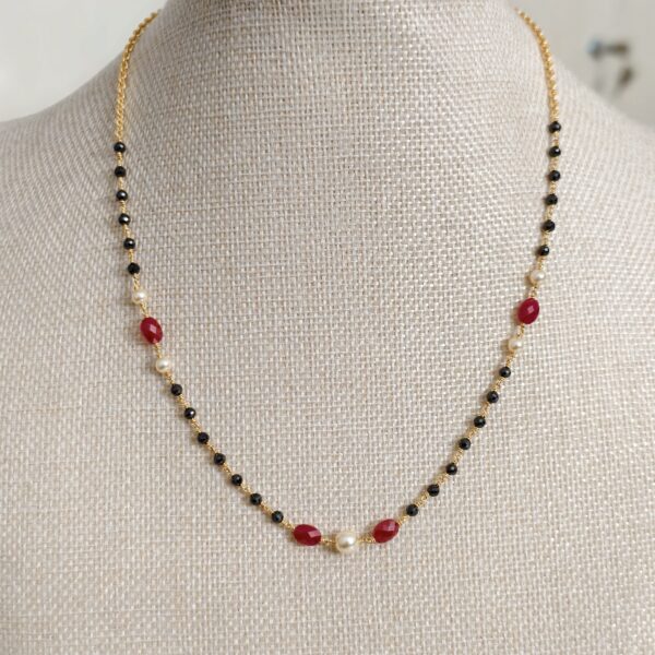 1670-single line black diamond with pearl and chetan ruby