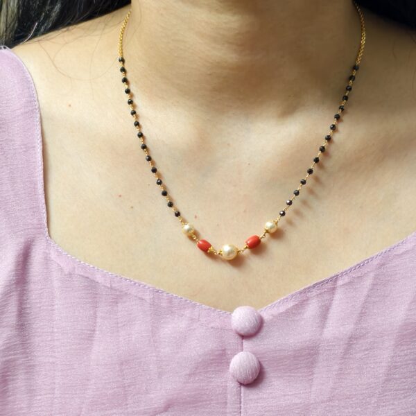 fj1922 black diamonds with pearl and coral single line chain