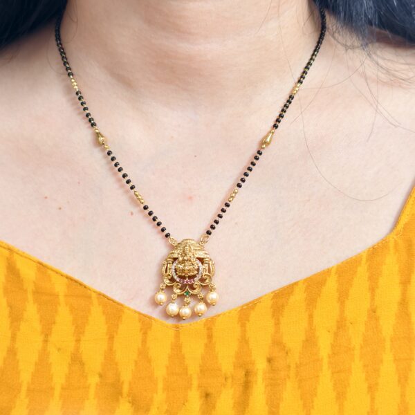fj1973 lakshmi pendant 18 inch two lines balck beads