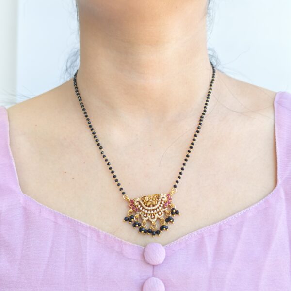 fj1953 lakshmi pendant 2 line black beads 18 inch ruby