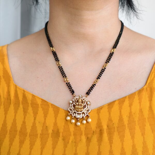 fj1973 lakshmi pendant 18 inch two lines balck beads
