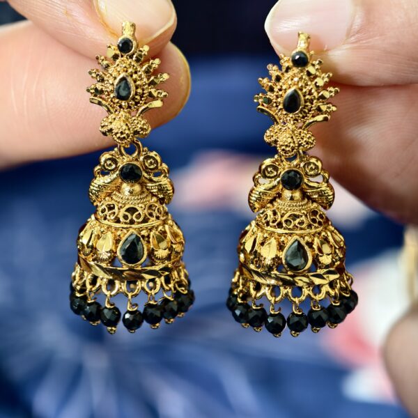 fj2421 black beads gold look alike jhumkas with screwback