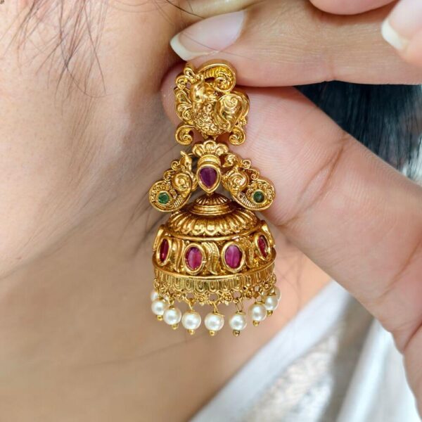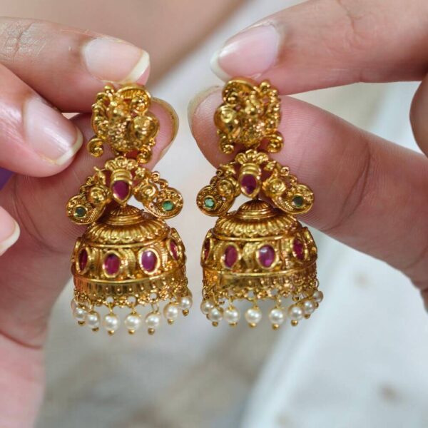 fj2499 real gold look Antique finish peacock bridal jhumkas