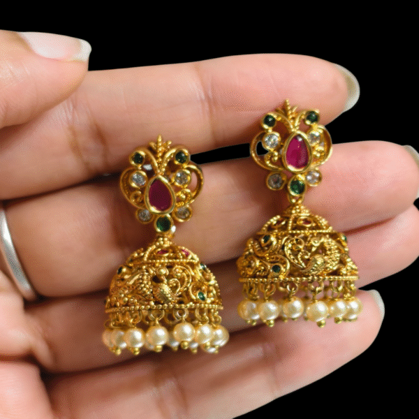 fj2108 temple style lakshmi jhumkas screwback