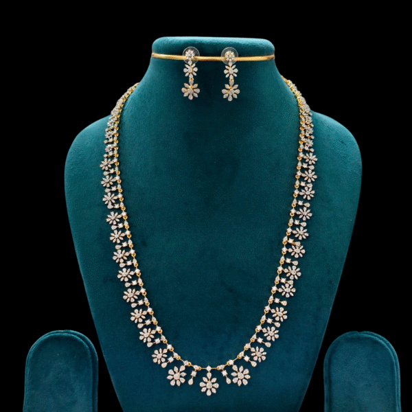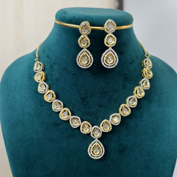 fj2044 diamond replica two step gree stone neck set with bombay screw back ear rings