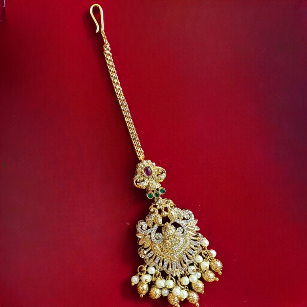 Nakshi polish lakshmi maang teeka with gold balls hangings