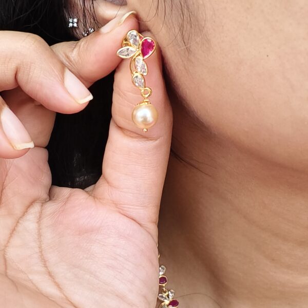 fj2173 real gold look lotus polki rubystone with swarovski pearl neckset with screwback earrings