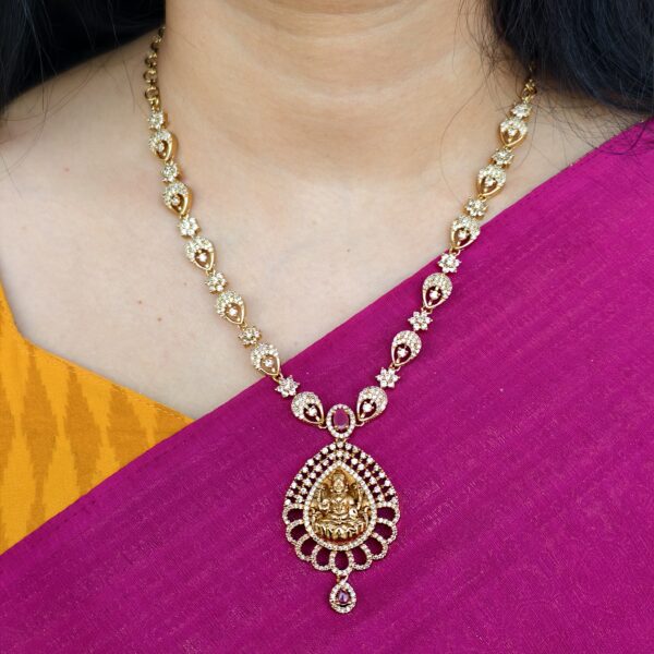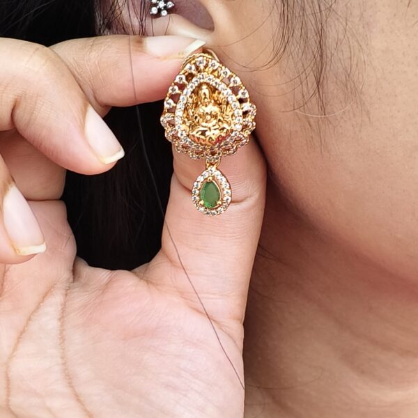 fj2106 lakshmi pendant green stone cz neckset with backchain and pushback earrings