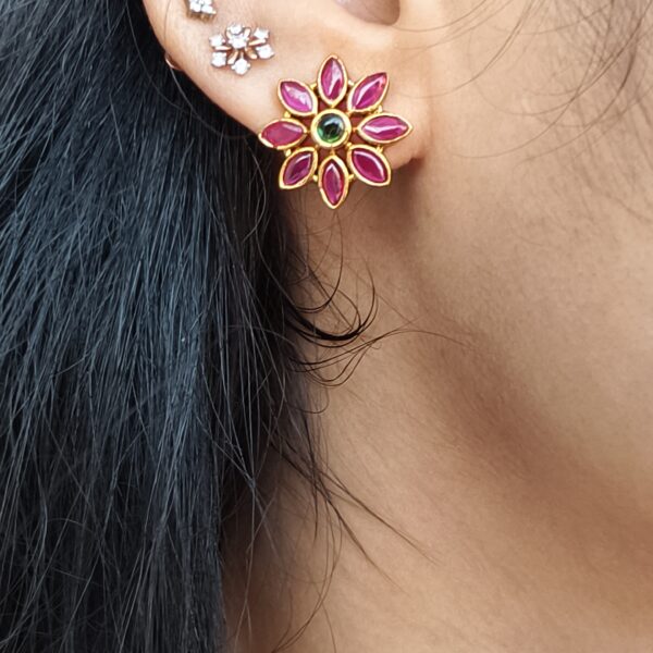 fj1987 Nakshi finish lakshmi rubi stud green jalar ear rings with swarovski pearls