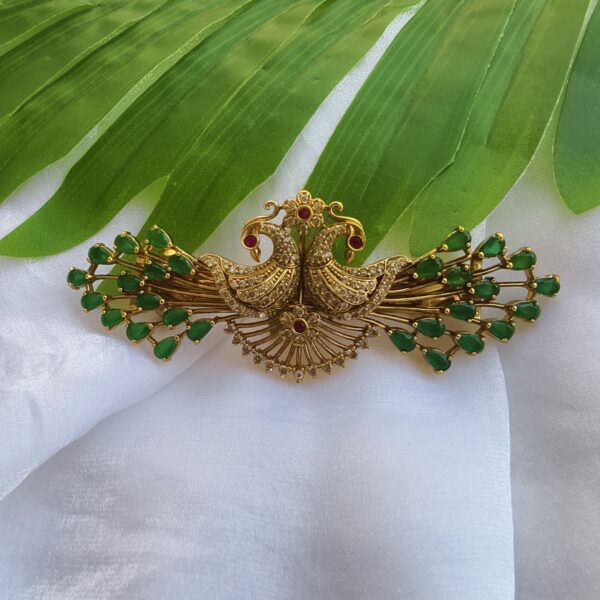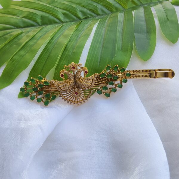 fj2444 antique finish peacock green stone hair clip