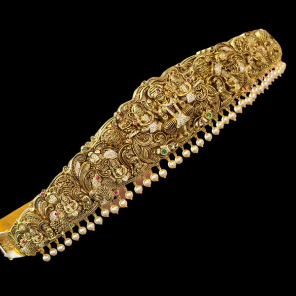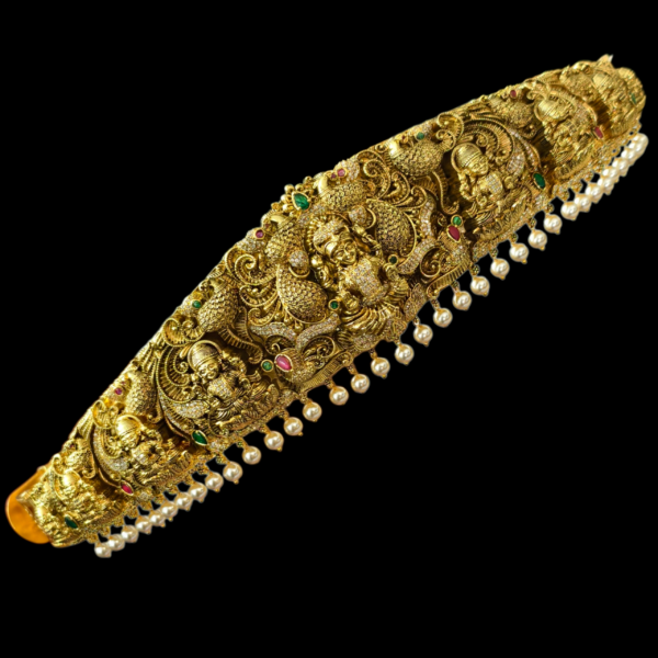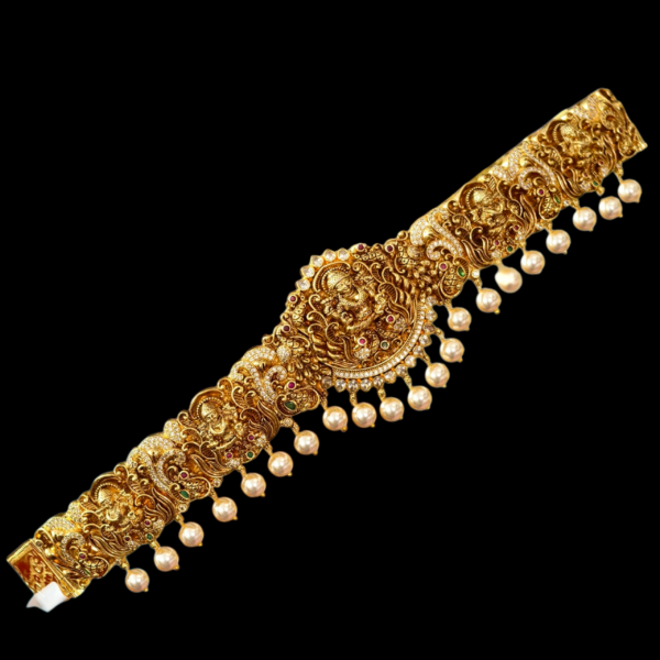 fj2435 real gold look lakshmi vaddanam with swarovski pearls