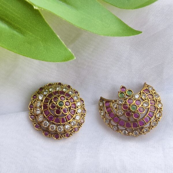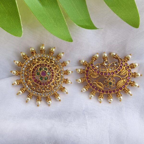 fj2428 real gold look gaja lakshmi pendant 5 line chandraharam with screwback earrings