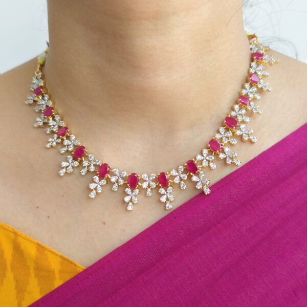 fj2173 real gold look lotus polki rubystone with swarovski pearl neckset with screwback earrings
