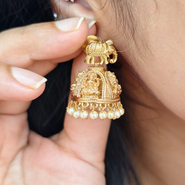 fj2188 real gold look alike nakshi temple gold look long haram with screw back jhumkas
