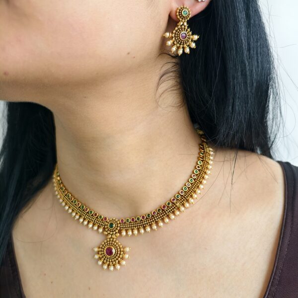 fj1905 gold look alike pota stone multicolour traditional nesckset with pushback earrings