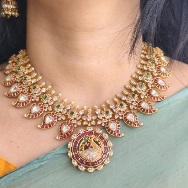fj2010 gold look a like multi stone cz neckset with push back ear rings