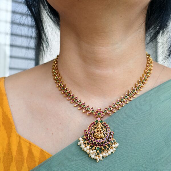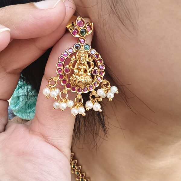 fj2027 lakshmi idol antique matt finish pota stone naanu with pushback earrings