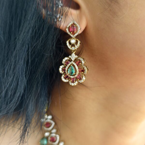 fj2094 ad stone designer neckset with multistone pushback earrings