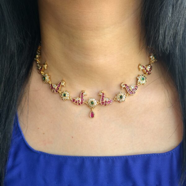 fj1898 antique finish lakshmi ruby stone 5 step chandraharam 30inch