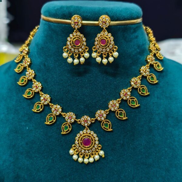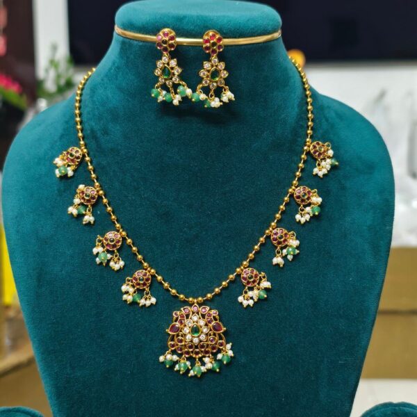 fj2633 multi colour guttapusalu neckset with pushback earrings