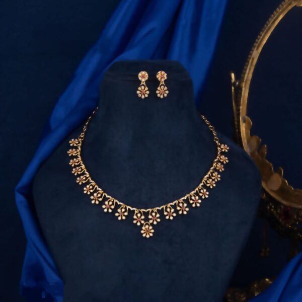 fj2358 white and ruby stone floral neckset with pushback earrings and backchain