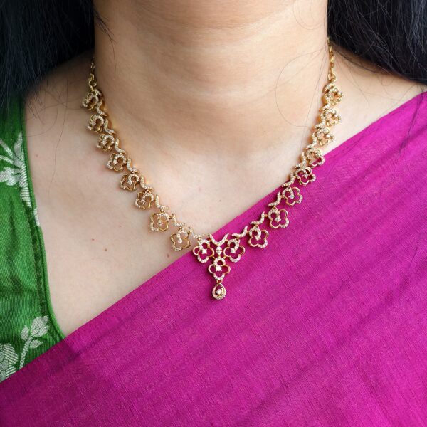 fj2229 micro gold plated gold finish neckset with earrings and backchain