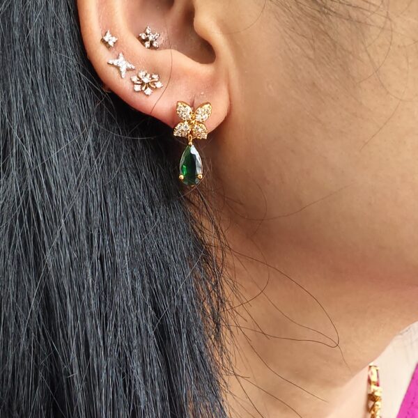 fj2245 white stone cz neckset with backchain and pushback earrings