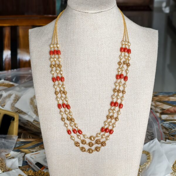 2 line 22 inch coral and pearl chain with chandraharam chain