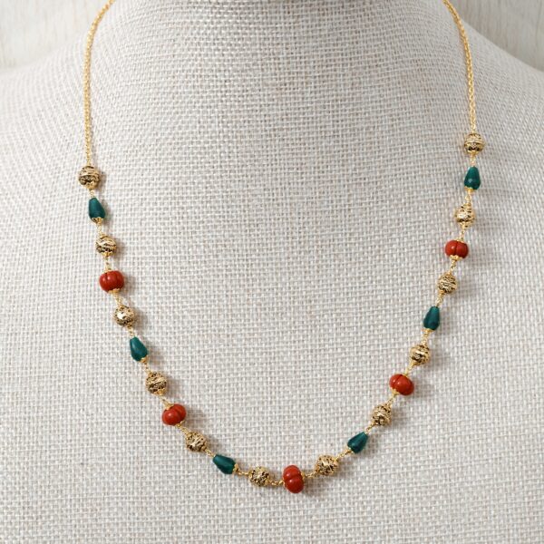 fj1943 gold look alike ad stone pendant with chetham ruby and pearl chain 18 inch