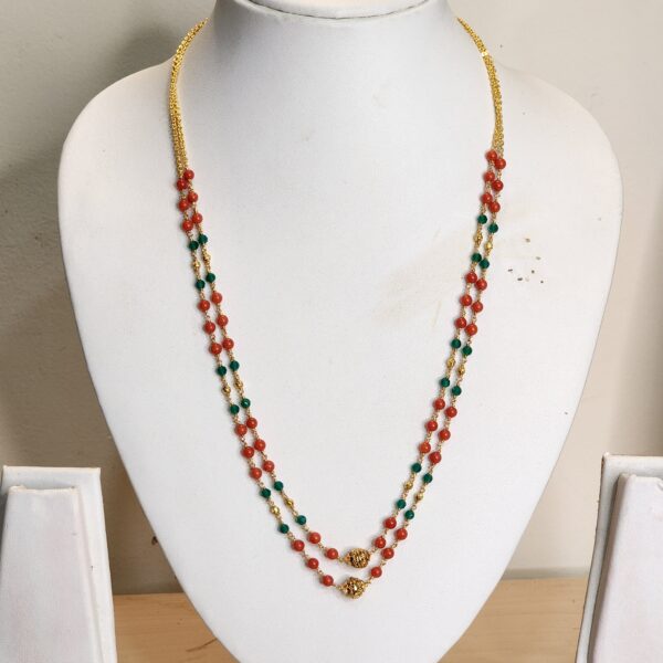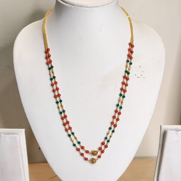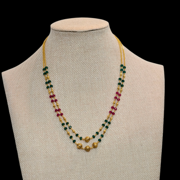 Real gold design kattutheega pearl with ruby and emerald beads chain