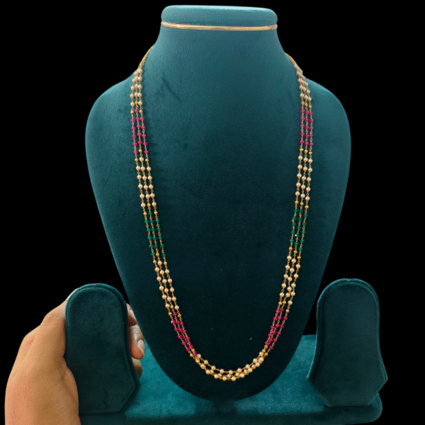 3 line pearl ruby manulu with gree manulu 24 inch chain