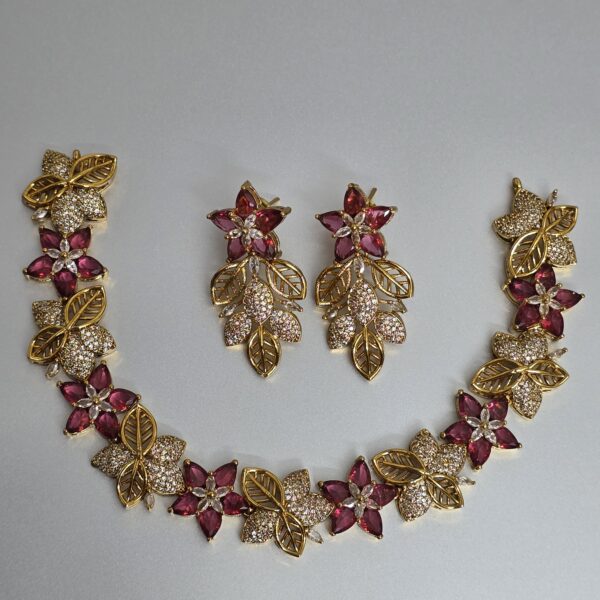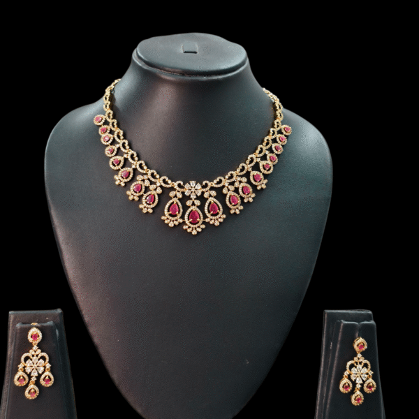 fj2045 diamond replica two step rubi stone neckset with bombay screw back ear rings