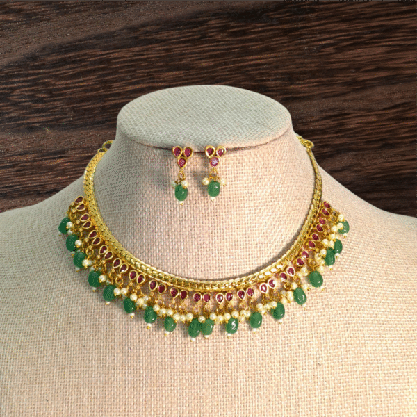 fj1904 gold look alike traditional pota rubystone neckset pushback earrings