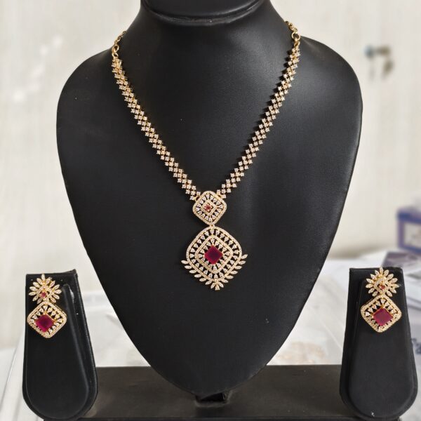 fj2045 diamond replica two step rubi stone neckset with bombay screw back ear rings