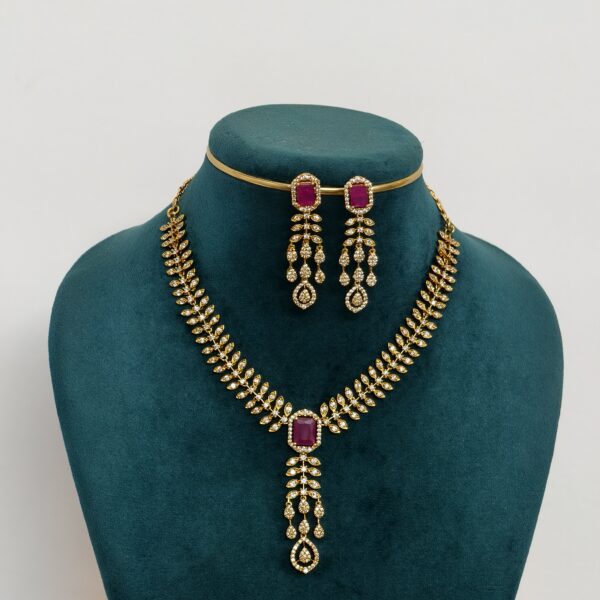 Ruby stone cz designer neckset with backchain