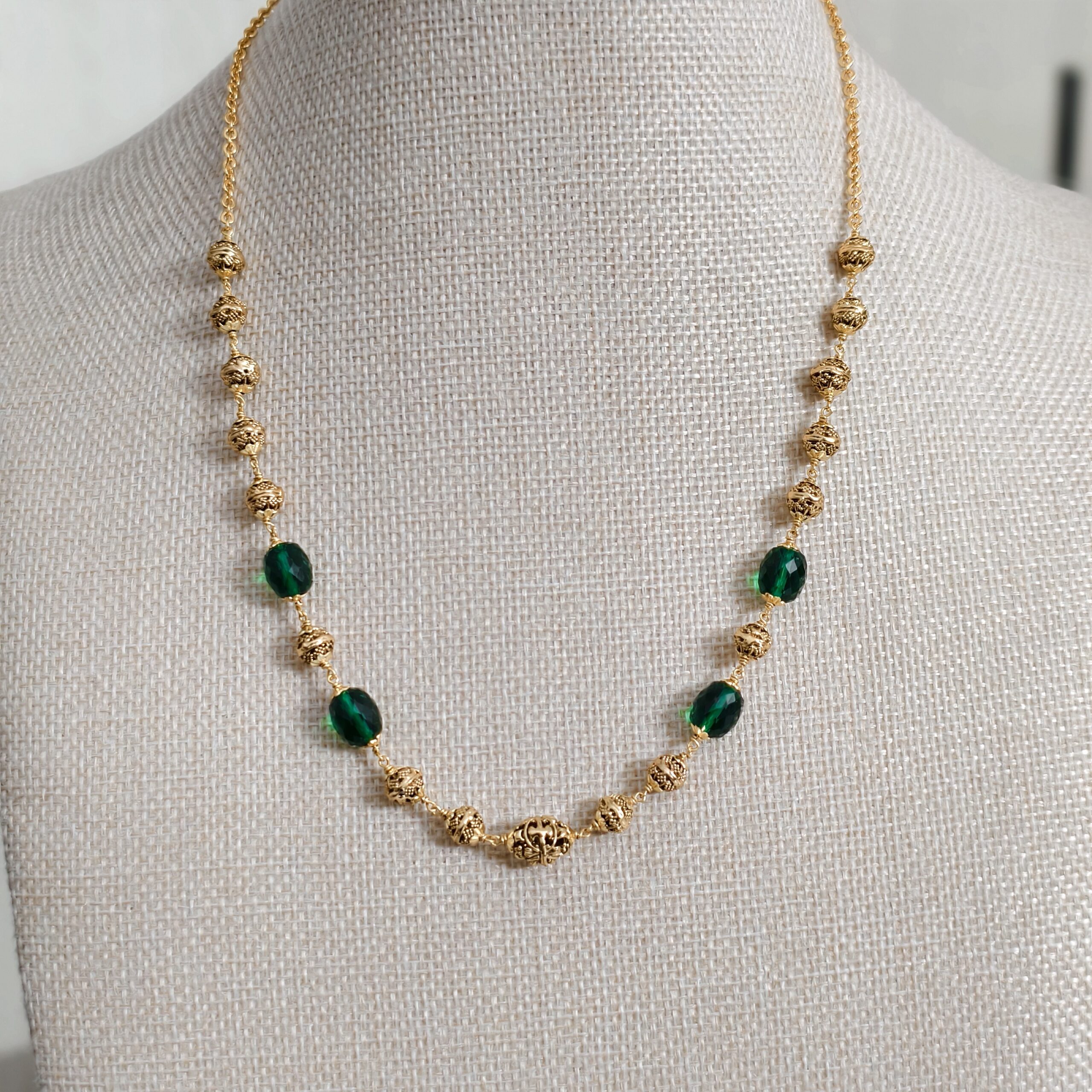 Green zircon beads with nakshi balls single line