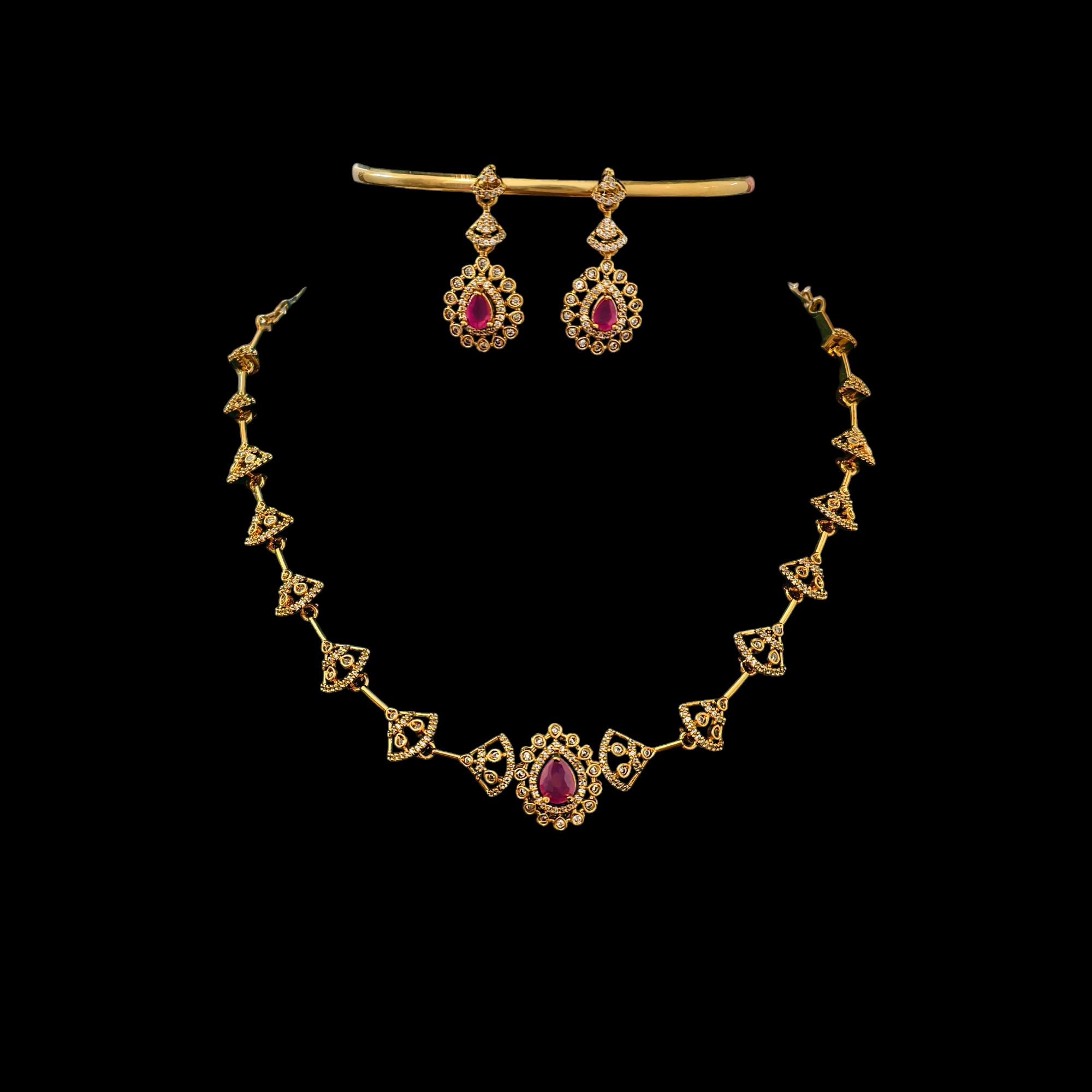 Ruby stone cz designer neckset with backchain