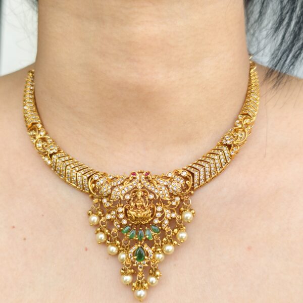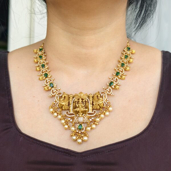 fj2042 real gold look temple design haram with swarovski pearl making and bombay screw earrings