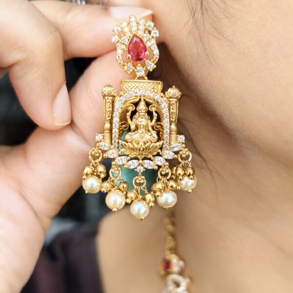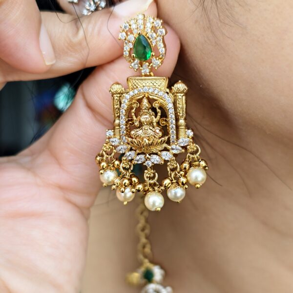 fj2037 antique finish nakshi lakshmi greenstone with backchain with screwback earring