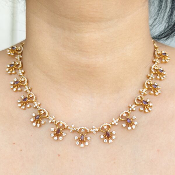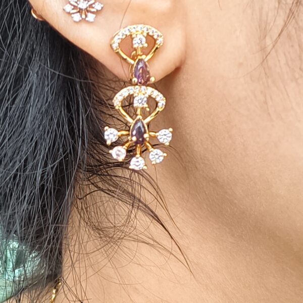 fj2043 purple stone cz neckset with back chain and push back ear rings