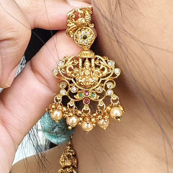 fj2041 gold look alike lakshmi peacock kante with backchain and pushback earrings