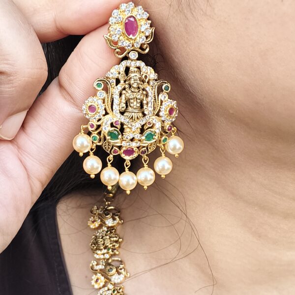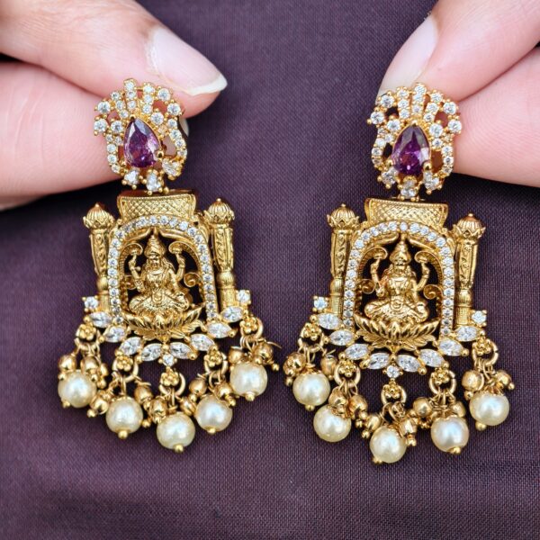 fj2038 antique finish nakshi lakshmi purple stone with back chainand screwback earrings