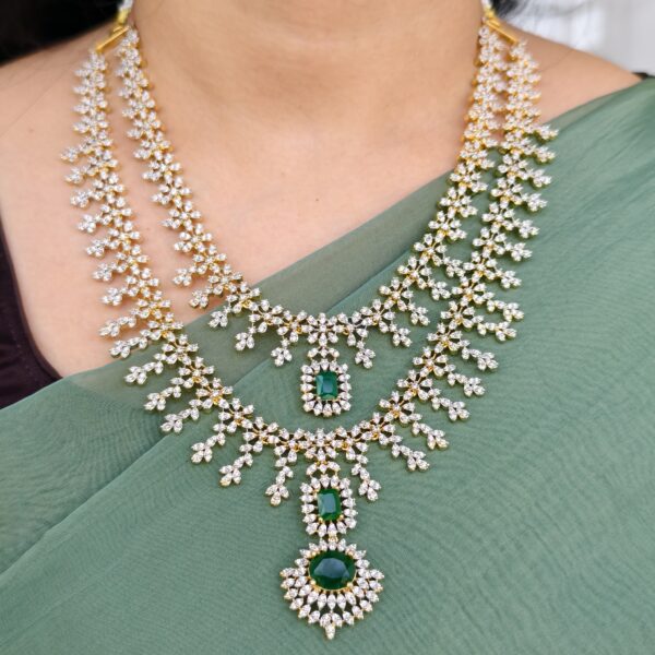 fj2044 diamond replica two step gree stone neck set with bombay screw back ear rings
