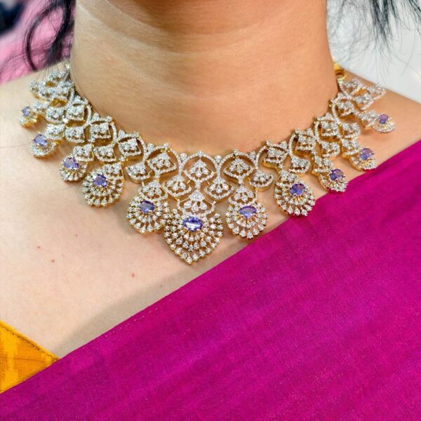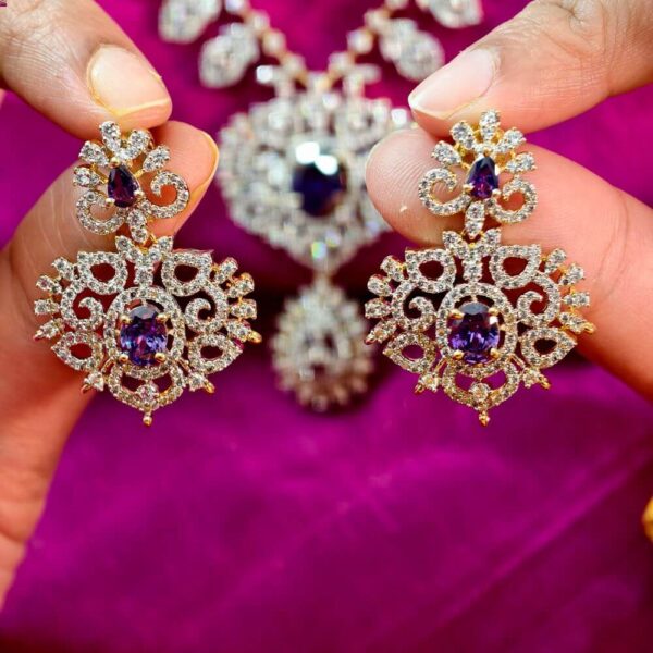 fj2512 gj polish diamond replica purple stone neckset with pushback earrings