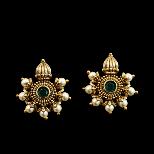 antique finish studs with pagadam pearl push back earrings